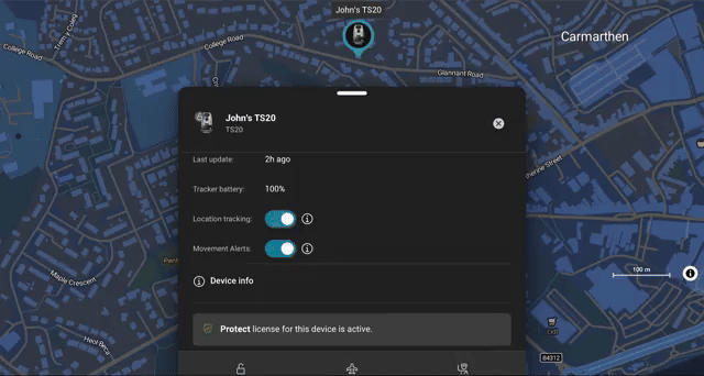 GeoCloud Protect proporciona localización y disuasión de robos innovadoras, tan avanzadas como su Leica TS20. Visualice dónde se encuentra su estación total en cualquier momento mediante el portal web o la aplicación GeoCloud Fleet y benefíciese del bloqueo remoto en caso de robo, inutilizando la estación y dificultando su reventa.